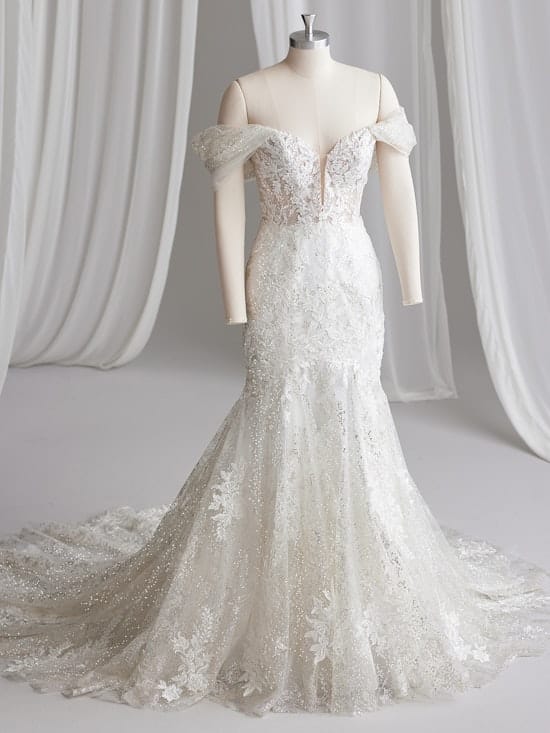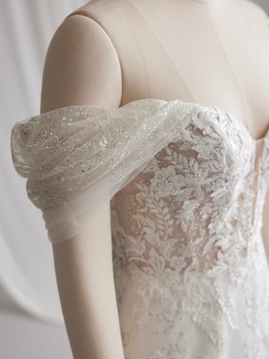 Sexy sequin mermaid wedding dress with detachable cap-sleeves and silver glitter details