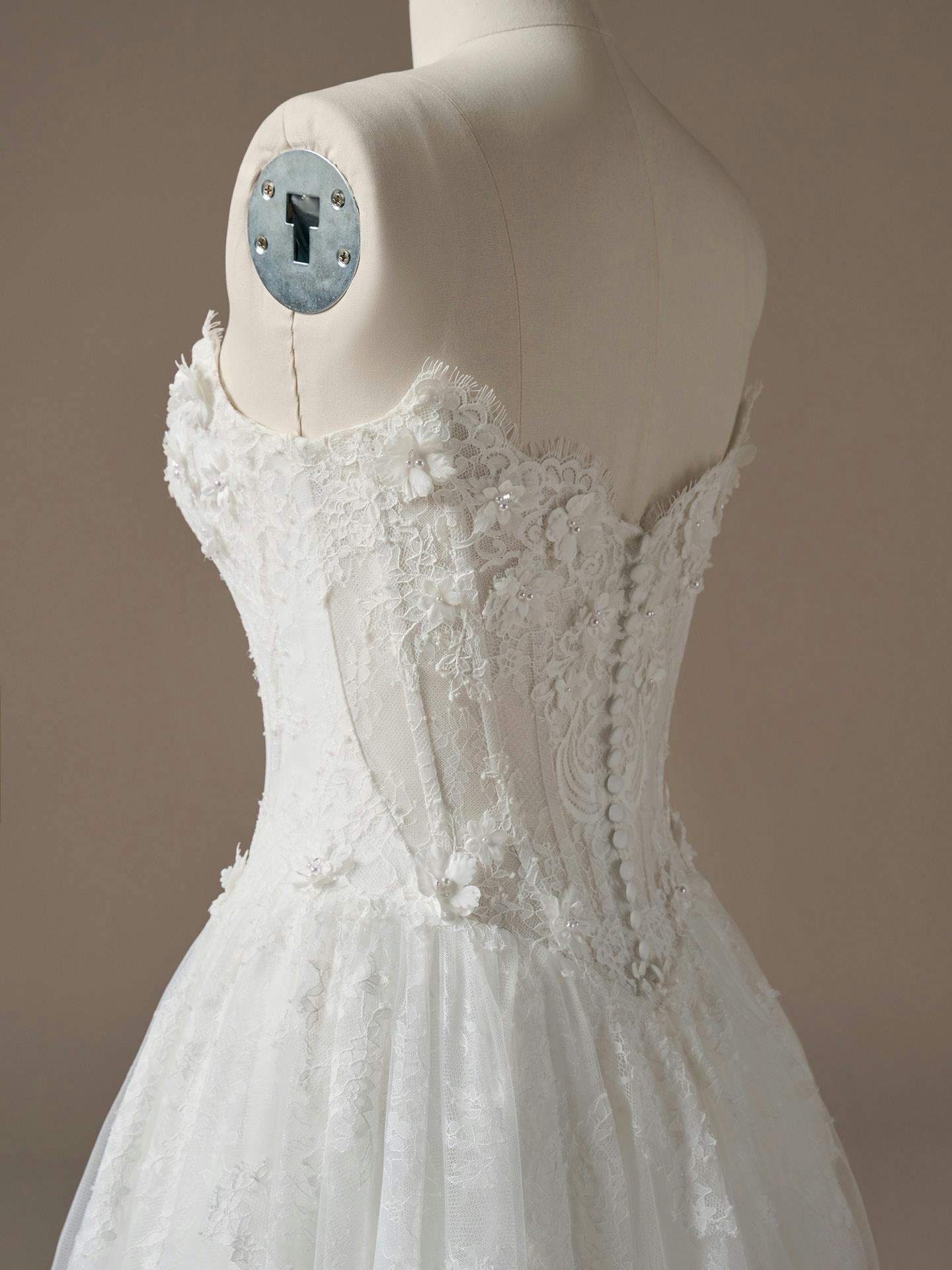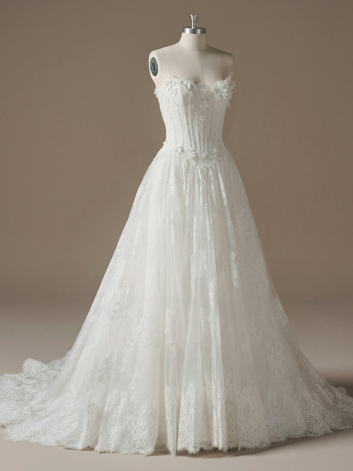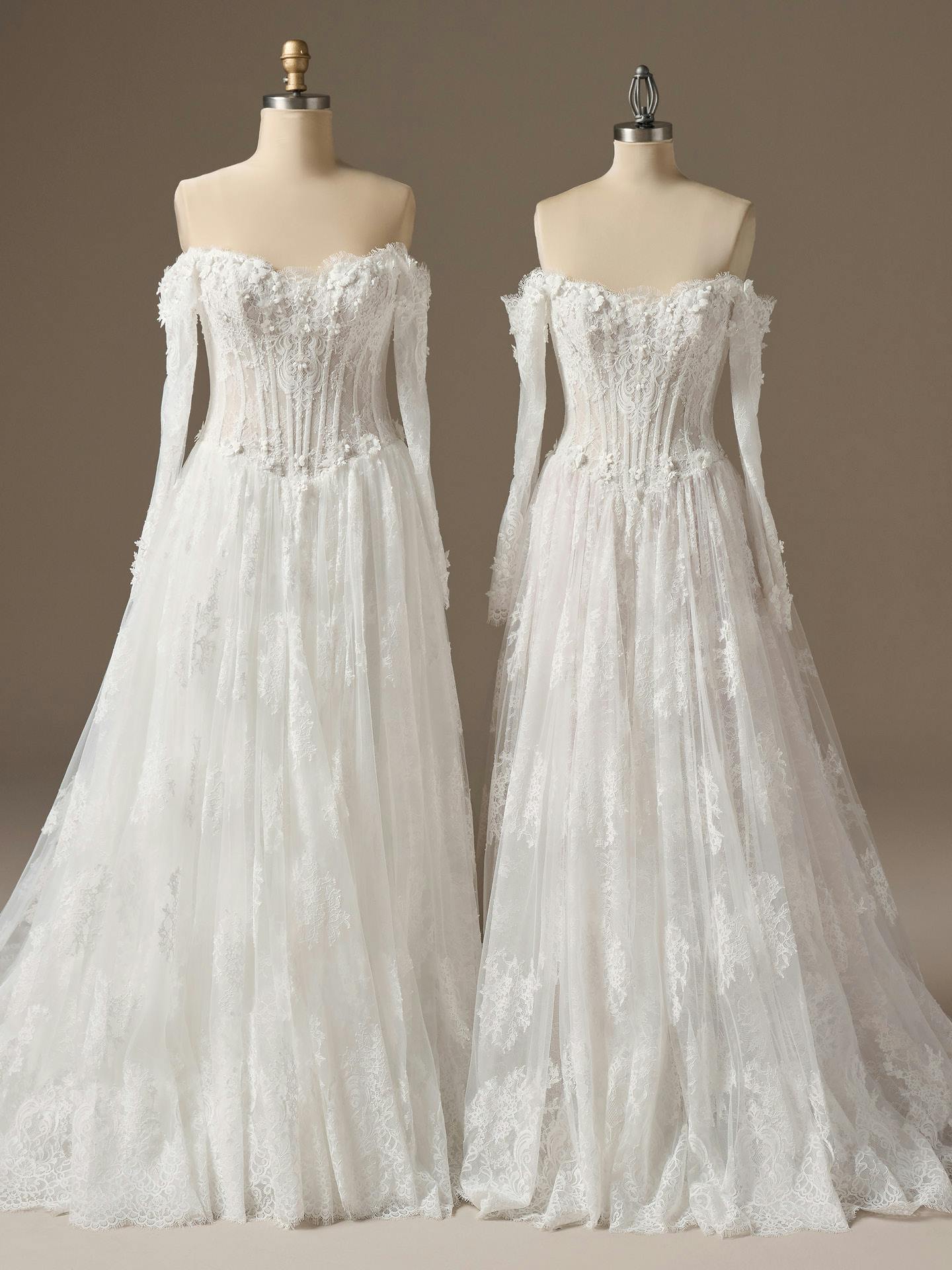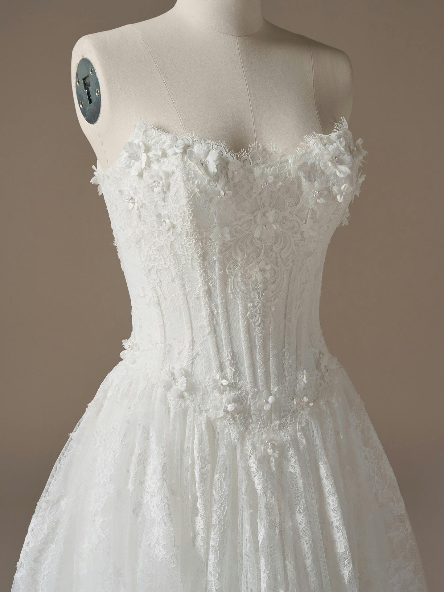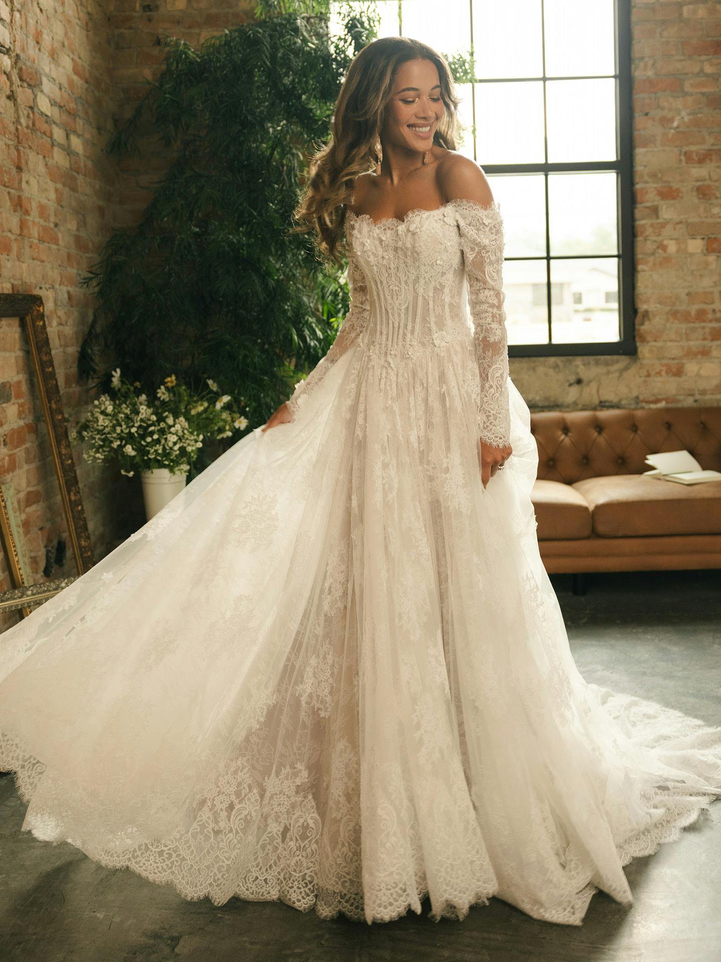 Kitaro flowing off-the-shoulder 3-D flower lace ballgown wedding dress