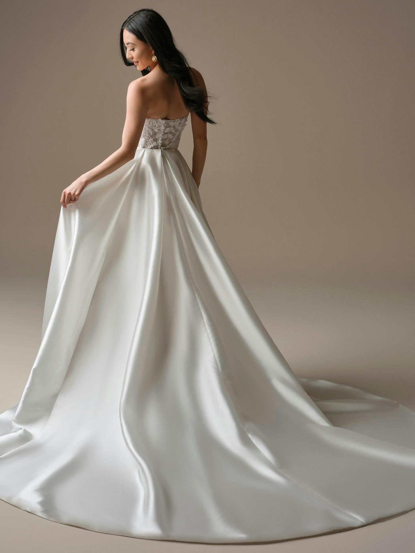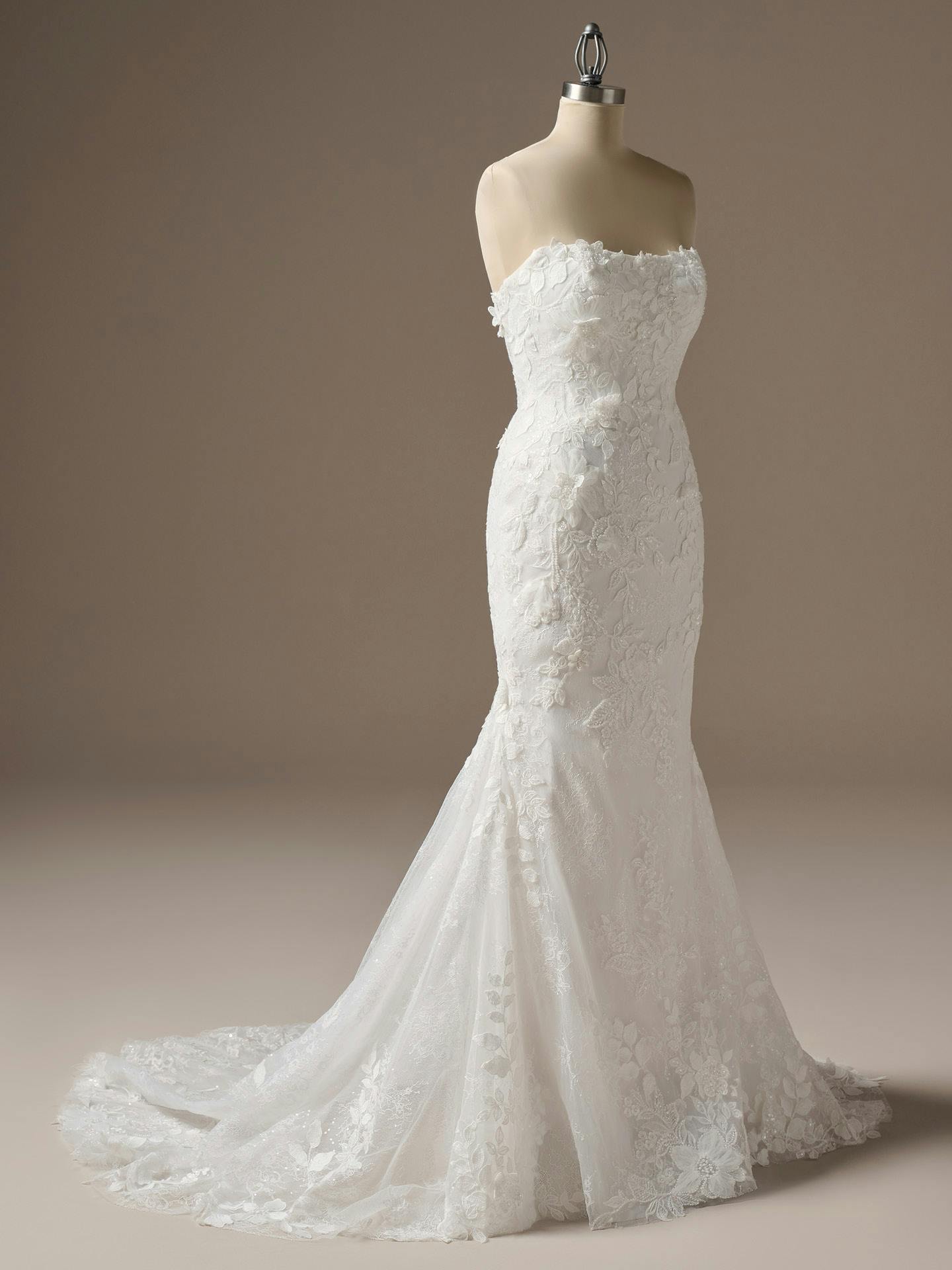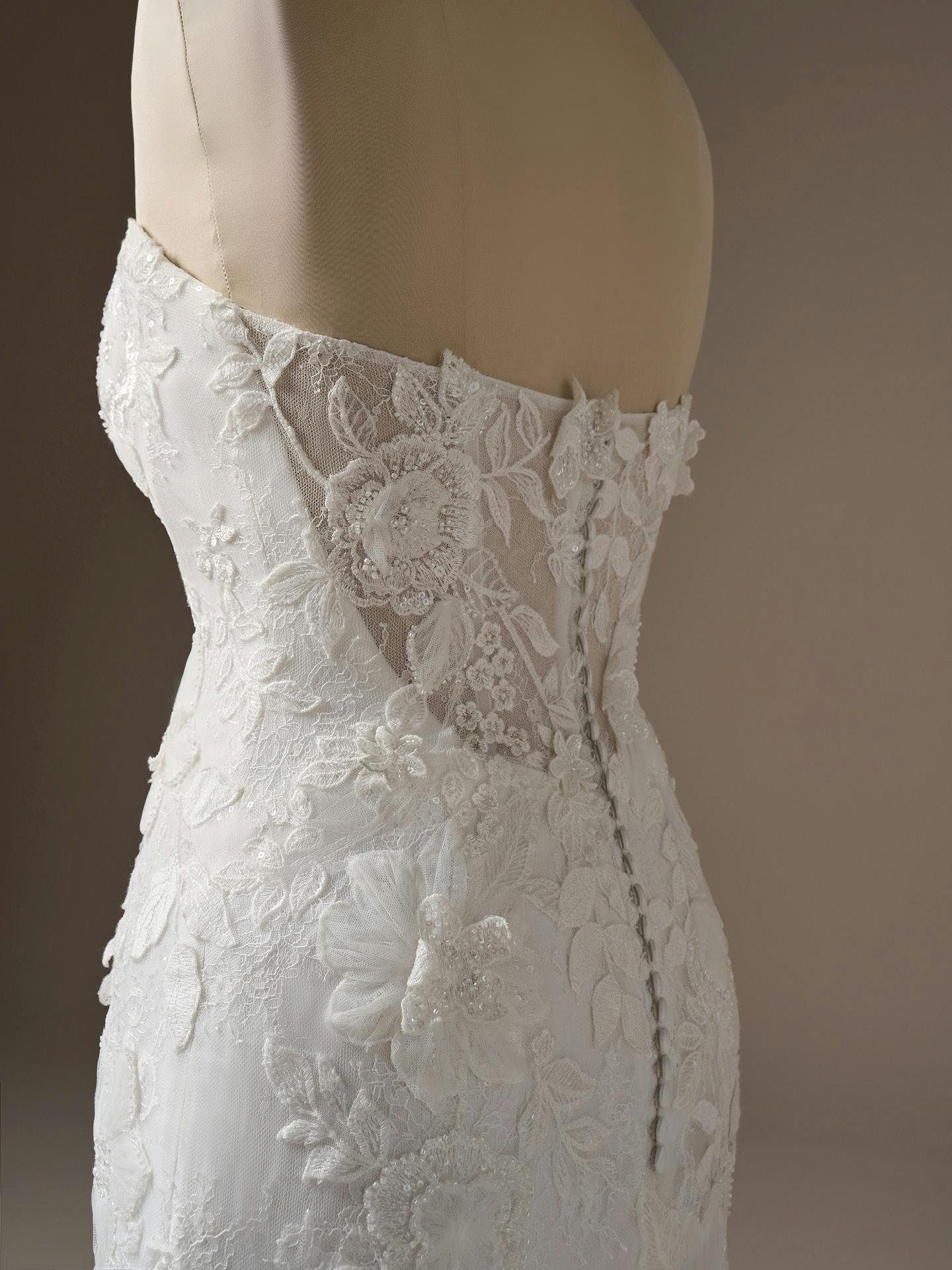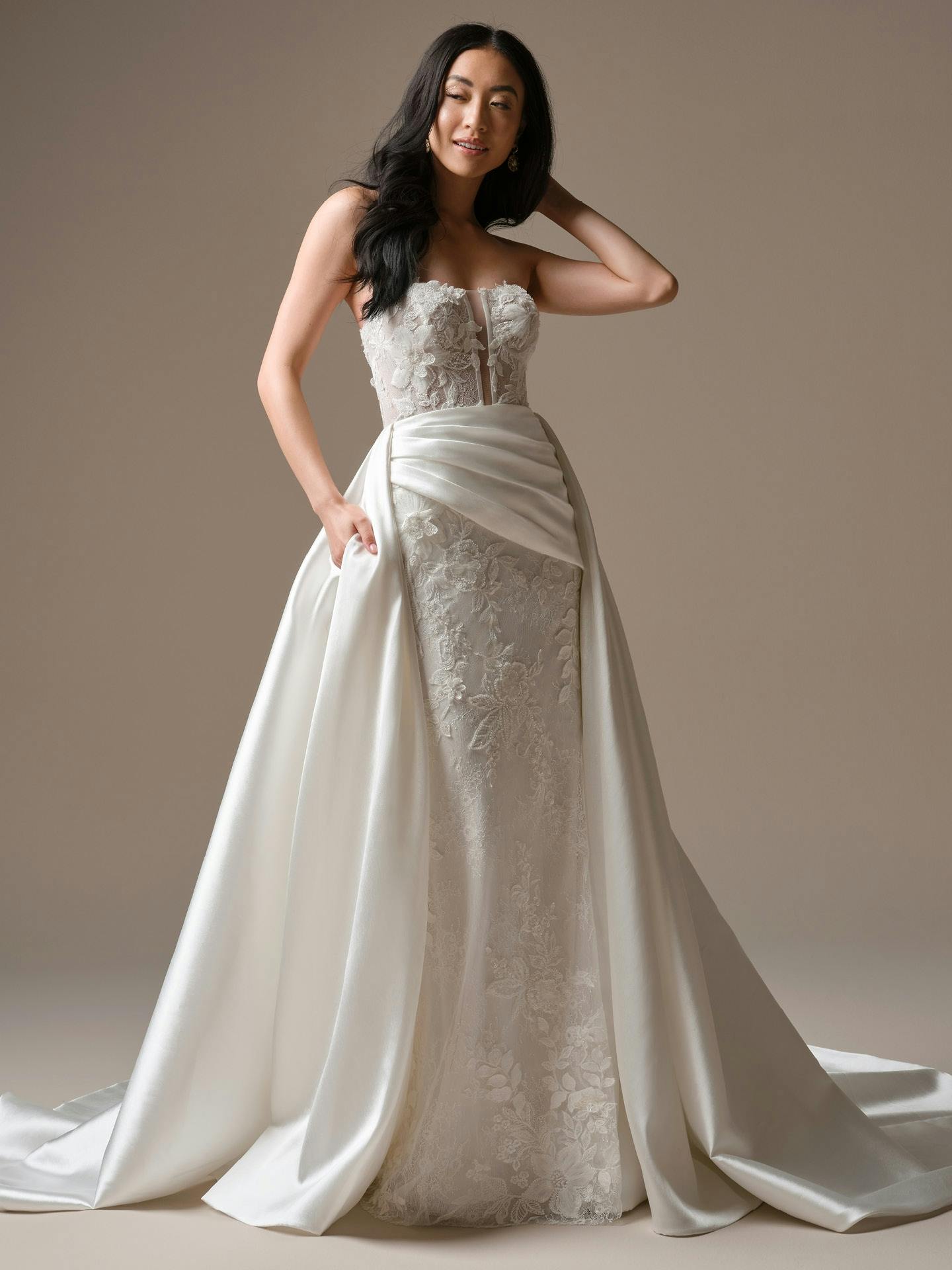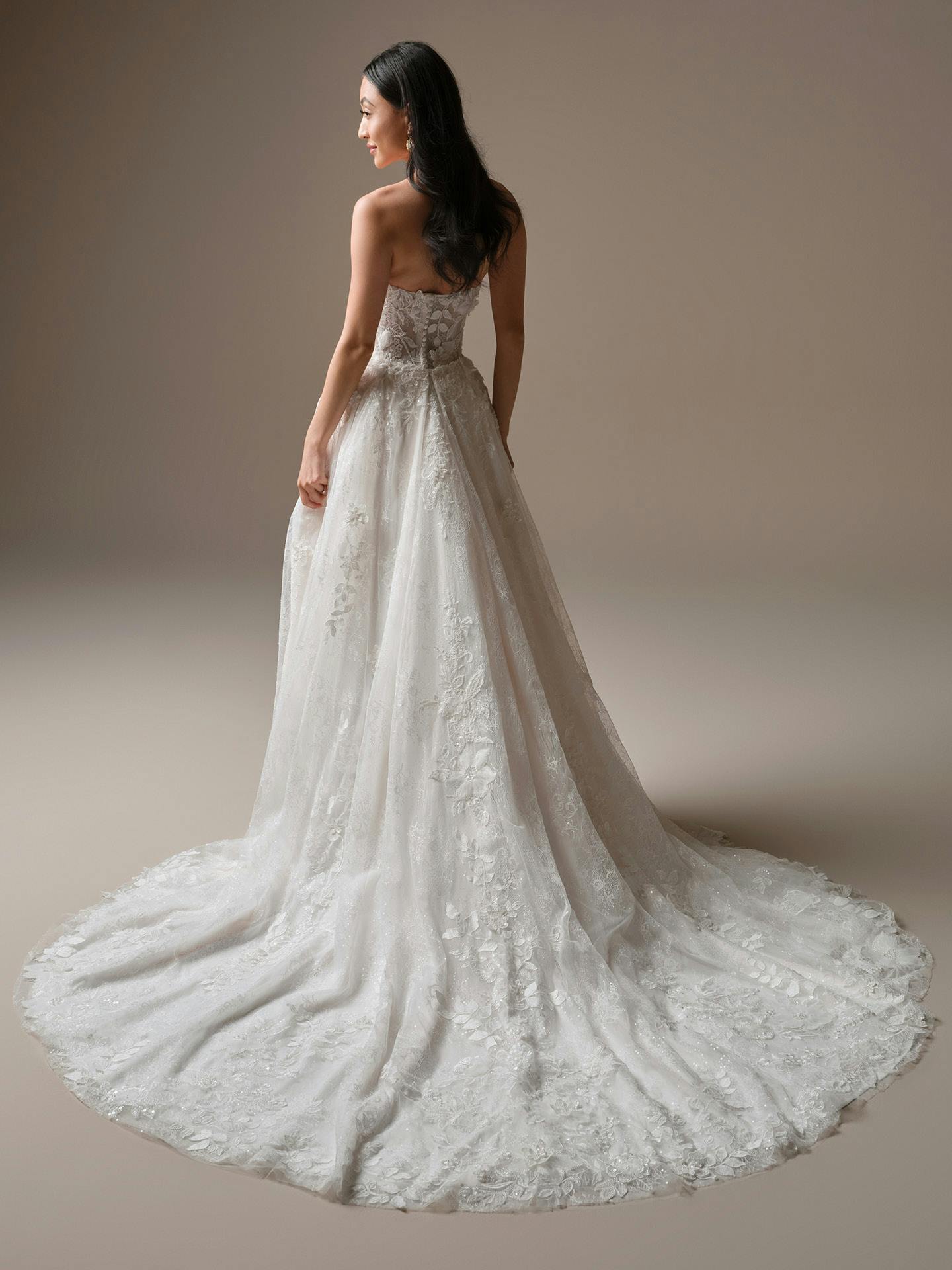 You’re bold. You’ve got a vibe. You’re destined for a plunging illusion square neckline 3-D floral wedding dress made for celestial backdrops and magical lighting.