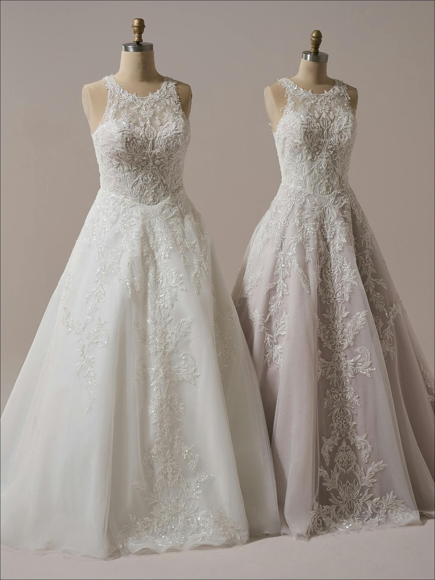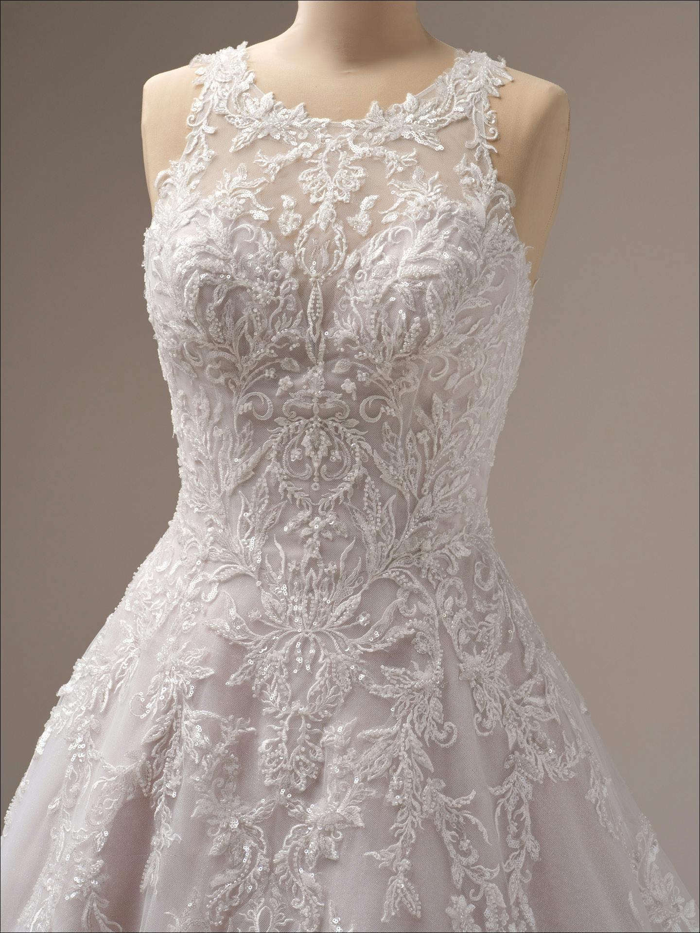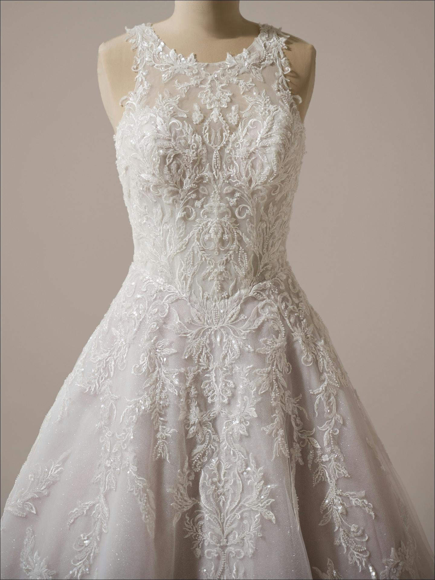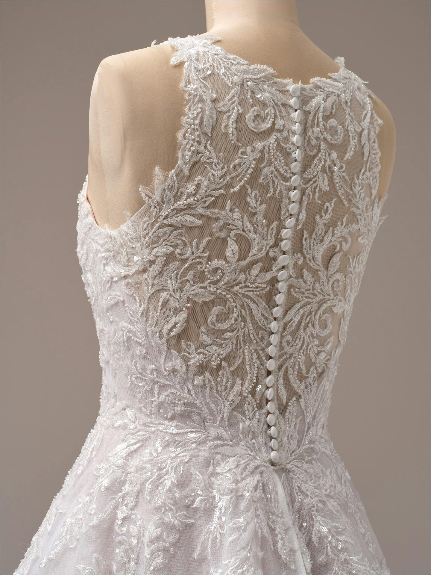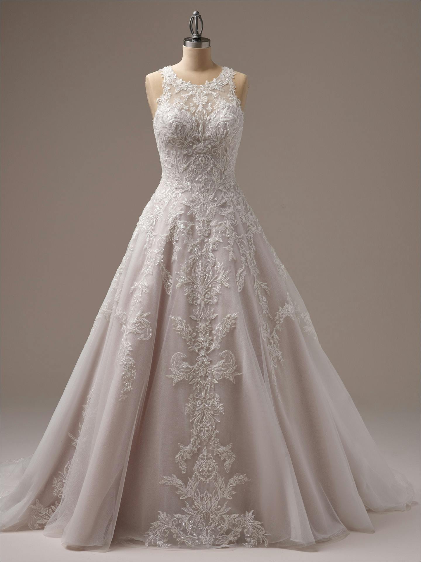 Keep a little mystery, but make it foxy. This halter neck illusion lace A-line wedding gown is the perfect balance of stylish, regal, and demure.