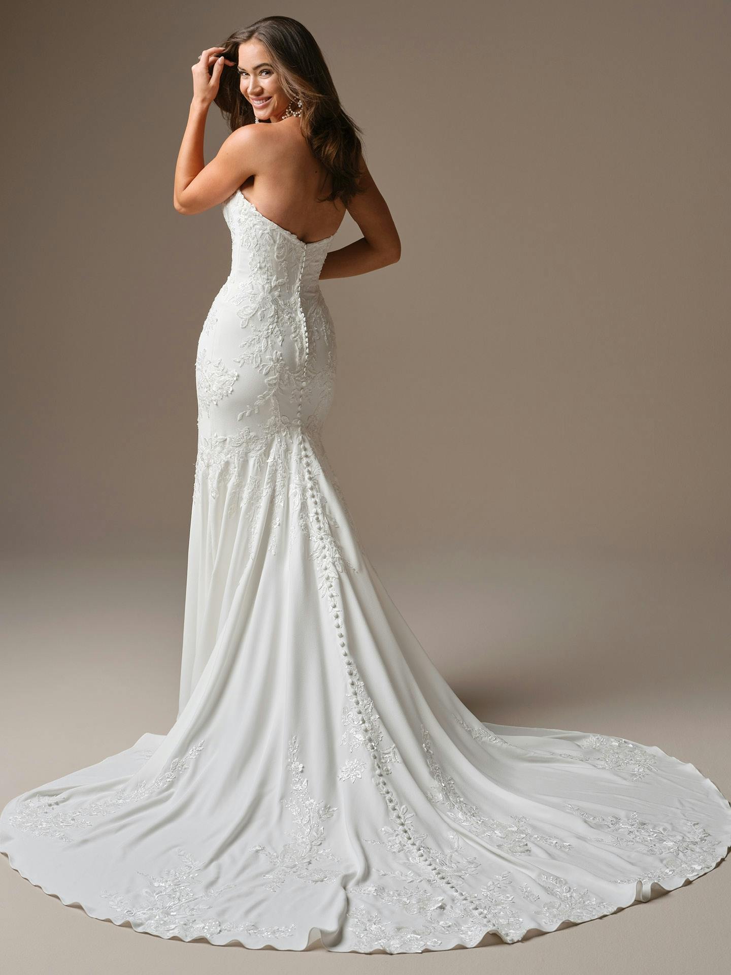 If this fit-and-flare cat eye neckline sequin lace wedding dress caught your eye, it’s clear you have immaculate taste of the “effortlessly sexy” variety.
